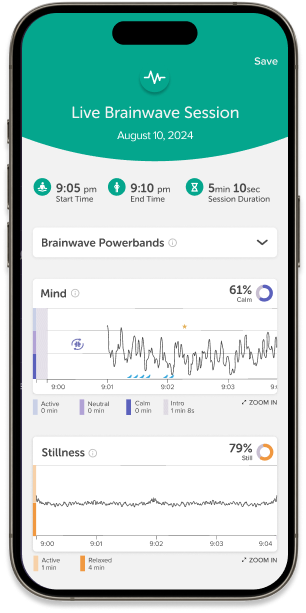 The Muse app processes data in real-time and records this information for you. At the end of each meditation, you will see an easy-to-read graph highlighting how much time your brain spent in calm, neutral, and active states.