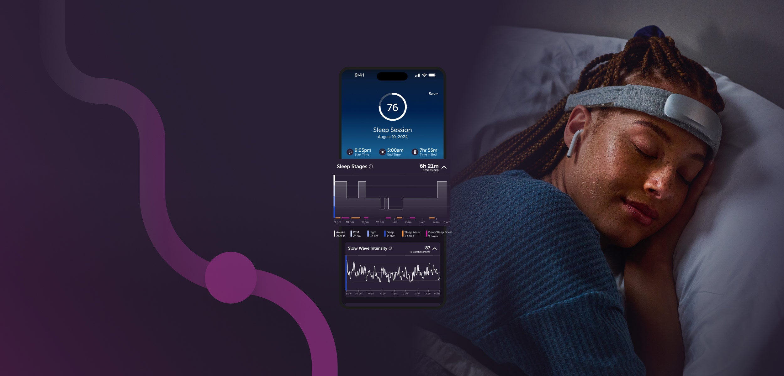 Muse S Athena reads your brain activity and detects slow-wave sleep as it happens. - Time cues to slow waves